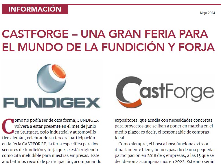 CASTFORGE – UNA GRAN FERIA PARA EL MUNDO DE LA FUNDICIÓN Y FORJA